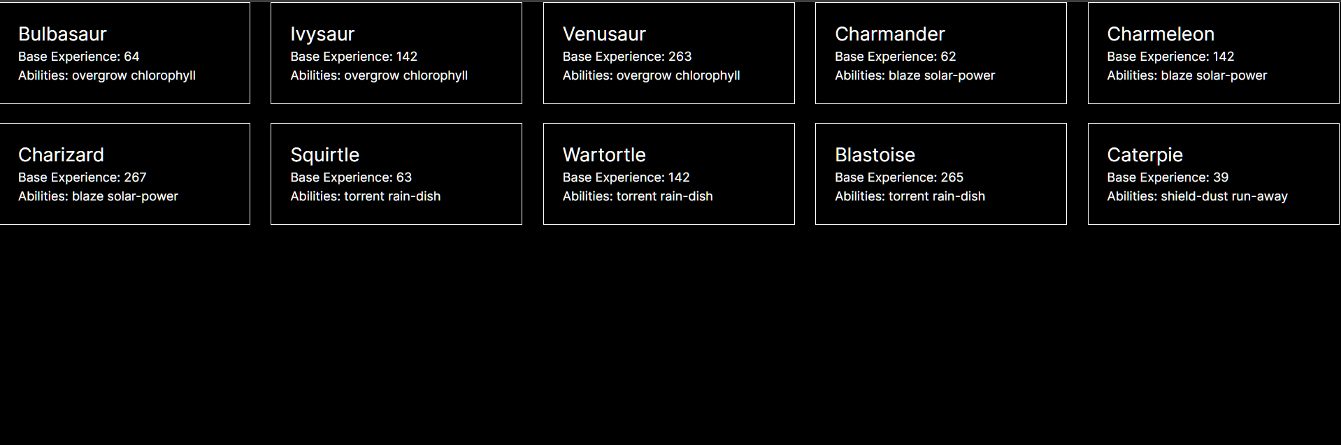 간단하게 포켓몬의 id, 이름, 기술명을 받아와서 페이지에 뿌려보겠다.